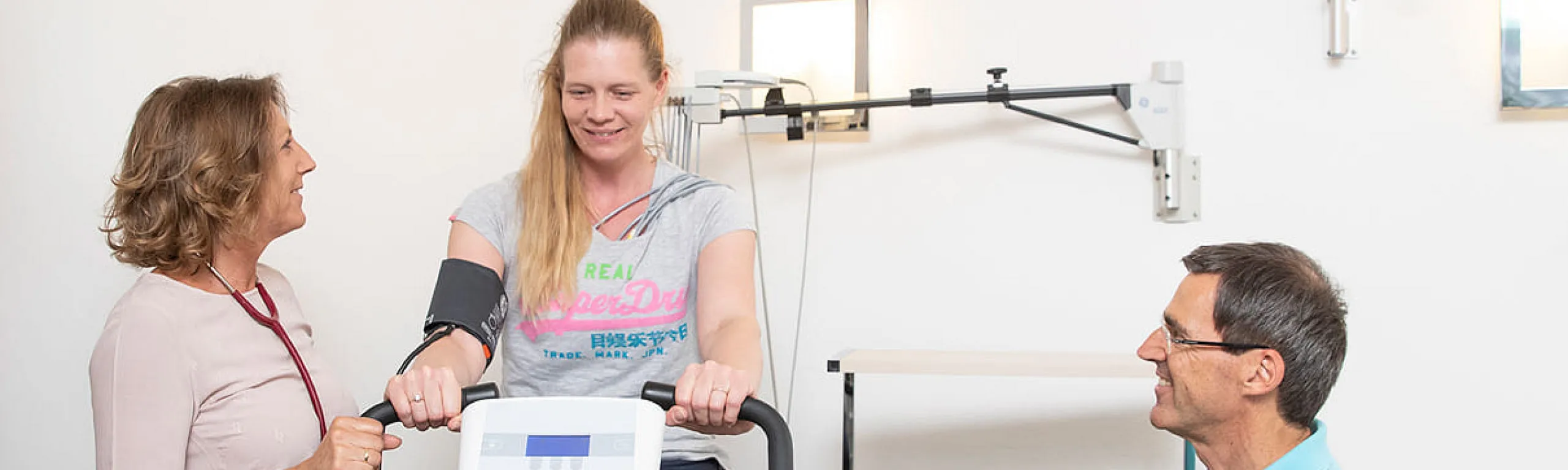 Das Belastungs-EKG ist sozusagen ein Stresstest für das Herz-Kreislaufsystem. Unter kontrollierten Bedingungen wird am Fahrrad eine zunehmende Belastung simuliert, die zum Anstieg von Blutdruck und Puls führt. Damit können Symptome und etwaige krankhafte Veränderungen aufgedeckt werden.